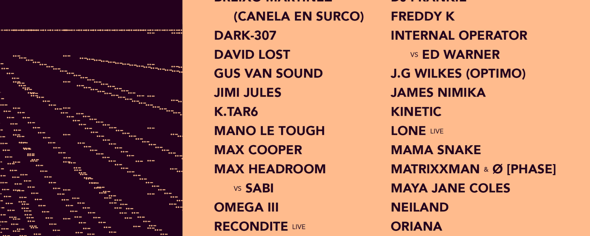 Sonidos Techno profundos, raíces ACID, aromas tenebroso, influencias vanguardistas y experimentales, ritmos cañeros, la esencia bailable del Garage e incluso algún toque más sutil con reminiscencia Tech, se ven representados en un gran número de actuaciones destinadas a todo tipo de públicos. Siguiendo esa tónica, el segundo día contará con referentes diversos como DVS1, Maya Jane Coles, Matrixxman vs O (Phase), Kinetic o J.G Wilkes (Optimo) entre otros.