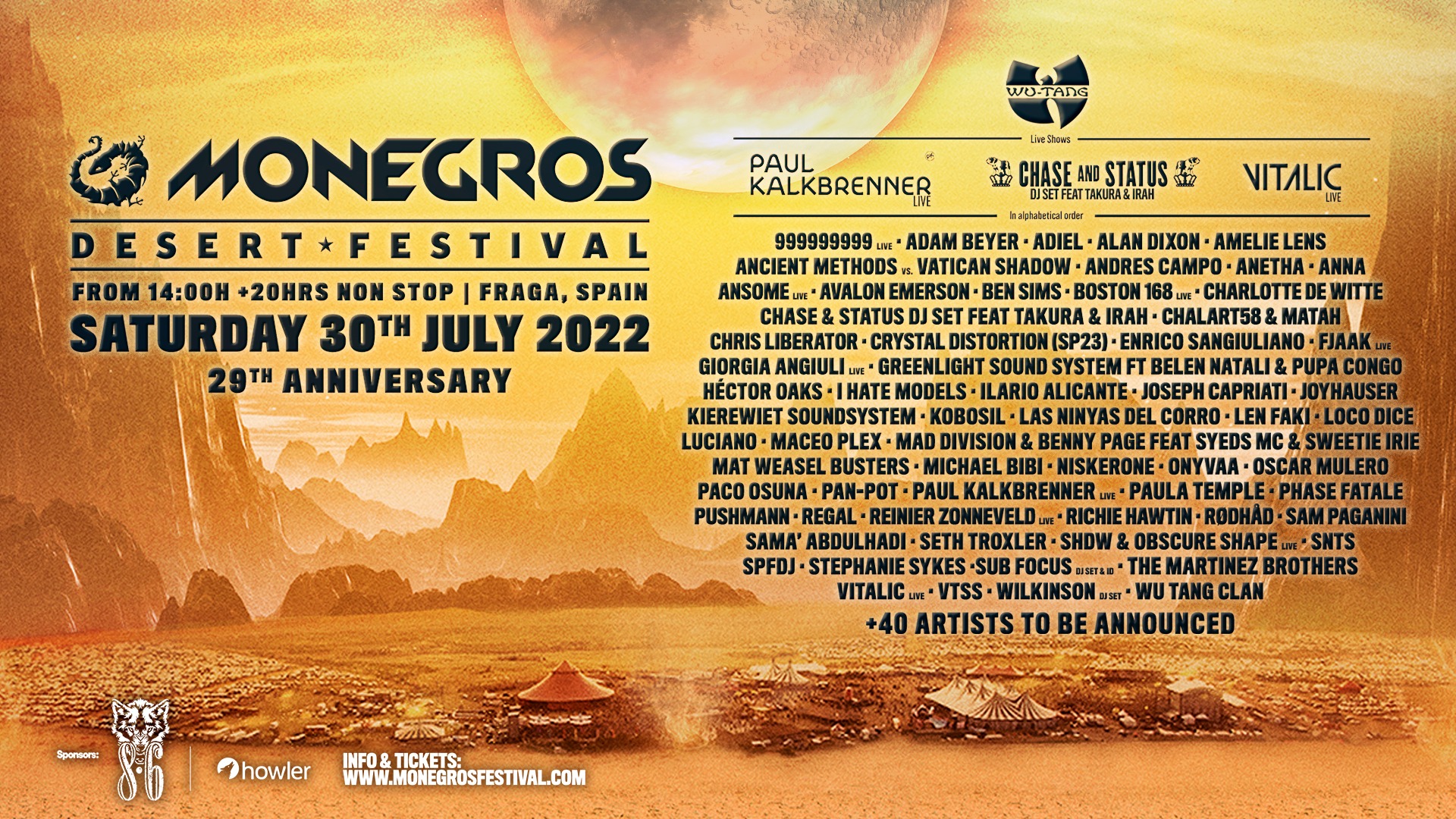Tras muchos años de parón y sucesivos intentos fallidos de retorno (maldita pandemia..), Monegros podrá volver a rugir con su prestigioso festival en 2022. El sábado 30 de Julio el festival celebrará su 29º Aniversario en una fantástica edición de la que ya se conoce el 70% del LineUp.