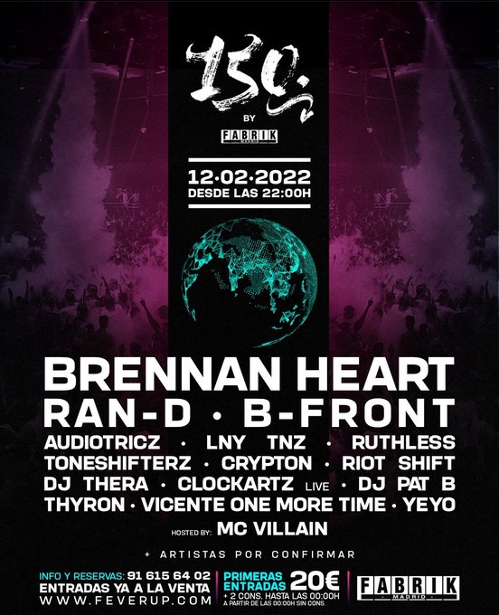 Bajo el liderazgo de la estrella neerlandesa, el evento reunirá junto a él a grandes referentes del momento. El más destacado, amén del propio Brennan, es sin duda RAN-D, quien por sí sólo sería capaz de llenar Fabrik gracias a su mezcla de contundencia y melodías. Y es que este evento contará con Raw, Euphoric y Freestyle de la mano de estrellas mundiales como B-FRONT, TONESHIFTERZ, LNY TNZ, RUTHLESS, AUDIOTRICZ, THYRON, PAT B o el siempre bienvenido VILLAIN ejerciendo de MC, entre otros grandes djs y productores.