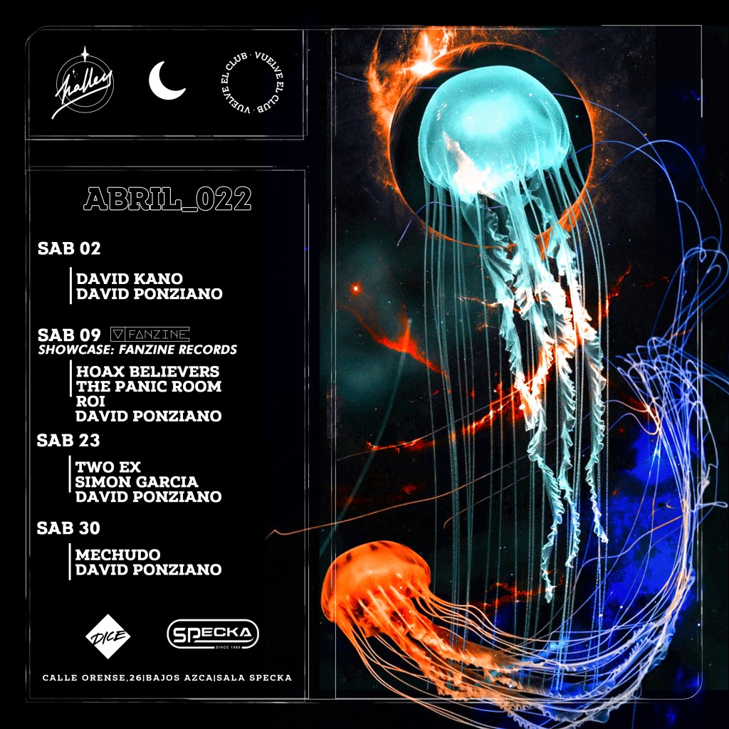 El segundo sábado del mes, dando paso a la Semana Santa, viene con el showcase de Fanzine Records. Proyecto formado en A Coruña en 2008 y que mantiene un claro objetivo: favorecer el crecimiento de la cultura de vanguardia de la electrónica en su región. Para esta fecha nos visitan Hoax Believers , The Panic Room y Roi.