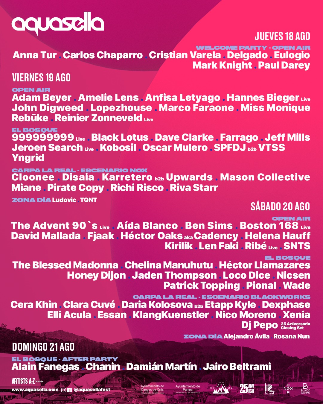 El próximo verano será muy especial gracias a la celebración del 25º Aniversario de Aquasella. Con un cartel plagado de grandes nombres, el festival regresará a lo grande dispuesto a hacer bailar sin parar a sus aficionados durante el fin de semana del jueves 18 al domingo 21 de agosto. Con el LineUp cerrado, el festival ha querido presentar la distribución de actuaciones por días y escenarios.