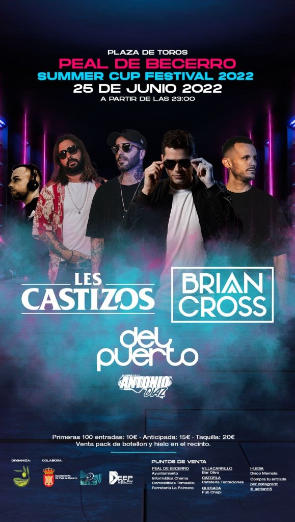 La localidad jiennense de Peal de Becerro bailará el próximo sábado 25 de junio al ritmo de la mejor música del momento. Electrónica y música urbana-latina se dan cita en Summer Cup Festival 2022, un evento que desde las 23:00 de la noche ofrecerá una genial cita musical en la plaza de toros de la localidad.