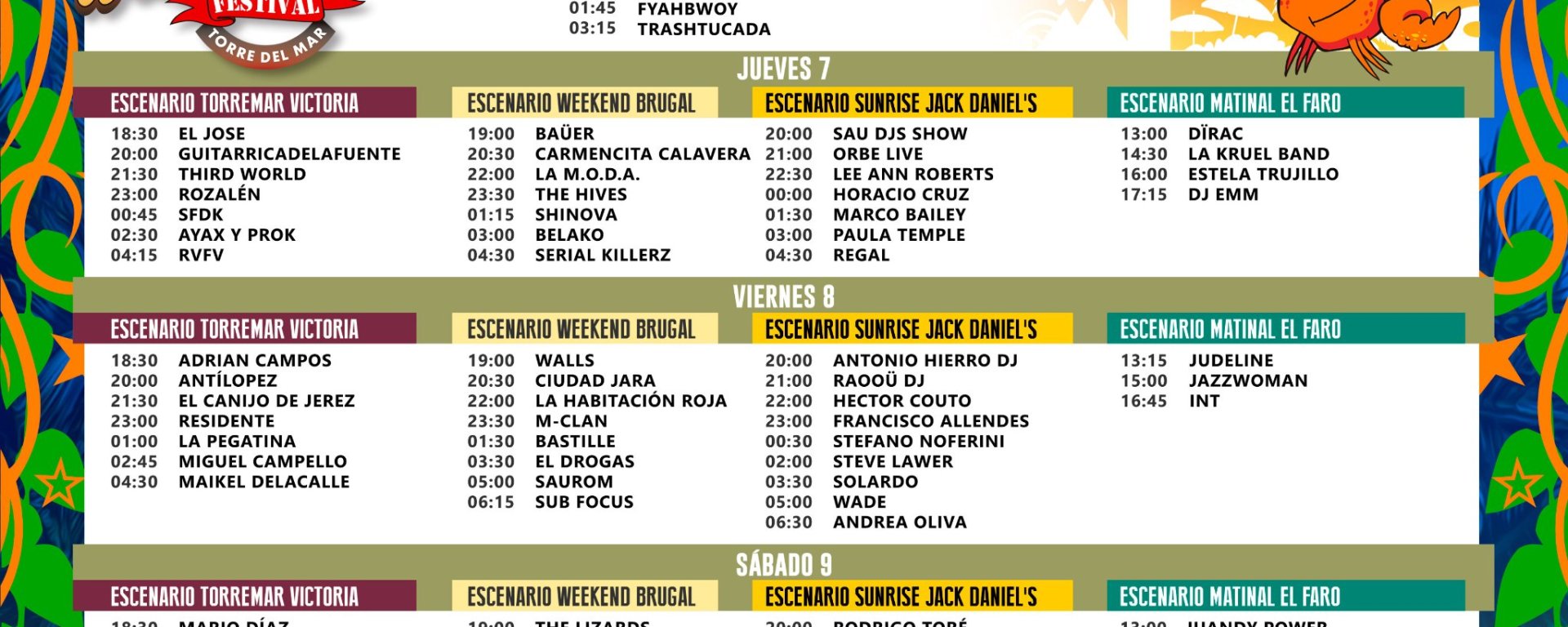La mejor música en vivo llegará a Torre del Mar (Málaga) el fin de semana del 6 al 9 de Julio gracias a una nueva edición de Weekendbeach Festival. Con gran variedad de estilos sobre su cartel y con artistas punteros de todas partes del mundo que lo darán todo sobre los escenarios, el festival andaluz ha dado a conocer los horarios de actuaciones de su regreso tras la pandemia.