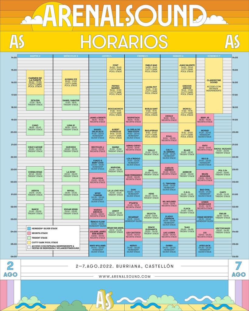 El festival valenciano ARENAL SOUND volverá a acaparar todas las miradas este fin de semana. Con los horarios de actuaciones ya publicados, el festival plasma ante los aficionados una propuesta musical de primer nivel basada en lo mejor de la vanguardia musical. Con mucho peso de la música urbana y latina y con presencia de grandes referentes de la electrónica internacional y nacional (Afrojack, Nervo, Mike Williams, DVBBS, Edgar Kerri, Brian van Andel, TAAO, Space Elephants…), el festival volverá a ser el punto de reunión de decenas de miles de personas.