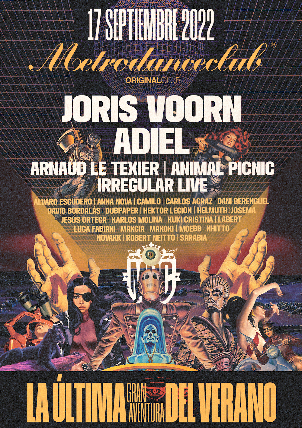 Como gran apuesta aparece de coprotagonista la italiana Adiel, una de esas perlas que surge de un año para otro que demuestra el valor y la magia del techno. Una druida con manos precisas y veloces que está en los carteles de las mejores propuestas europeas: Awakenings, Circoloco, Afterlife… Como actores secundarios aparecen nombres como Arnaud Le Texier, con un techno desenfrenado que tanto está enamorando a las nuevas generaciones. También estarán Animal Picnic, un dúo muy querido en Metro que ha sabido labrarse un gran nombre fuera de las fronteras, un esperado regreso para los amantes de las melodías infinitas.