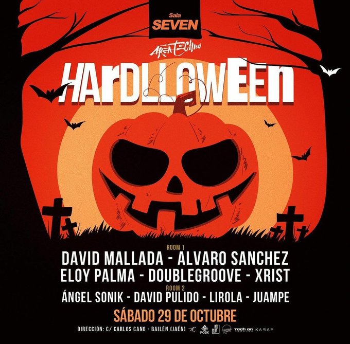 Bailén disfrutará del mejor Techno en la próxima noche de Halloween. La Sala Seven de la localidad jiennense acogerá este sábado 29 de octubre un evento denominado Hardlloween, con el que el colectivo Area Techno hace una fuerte apuesta por el Underground en una fantástica cita musical que contará con 2 salas simultáneas.