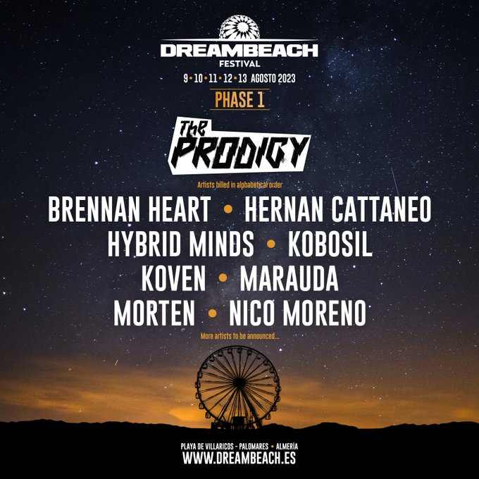 Encabezando la propuesta, el festival ha apostado por los británicos THE PRODIGY, auténticas leyendas de la música electrónica y que casan a la perfección con la identidad musical de Dreambeach. En base a Bass, Electro, Breakbeat, Techno, Rock y Rave, y con esa esencia Punk tan rompedora, los británicos se subirán al escenario para desatar la locura entre los aficionados con un Live demoledor. Sobre el MainStage estará también uno de los productores más en forma del circuito en los últimos años. El danés MORTEN hará que el respetable salte sin parar con el mejor sonido Future Rave, alzando las nuevas esencias Big Room y EDM hasta lo más alto.