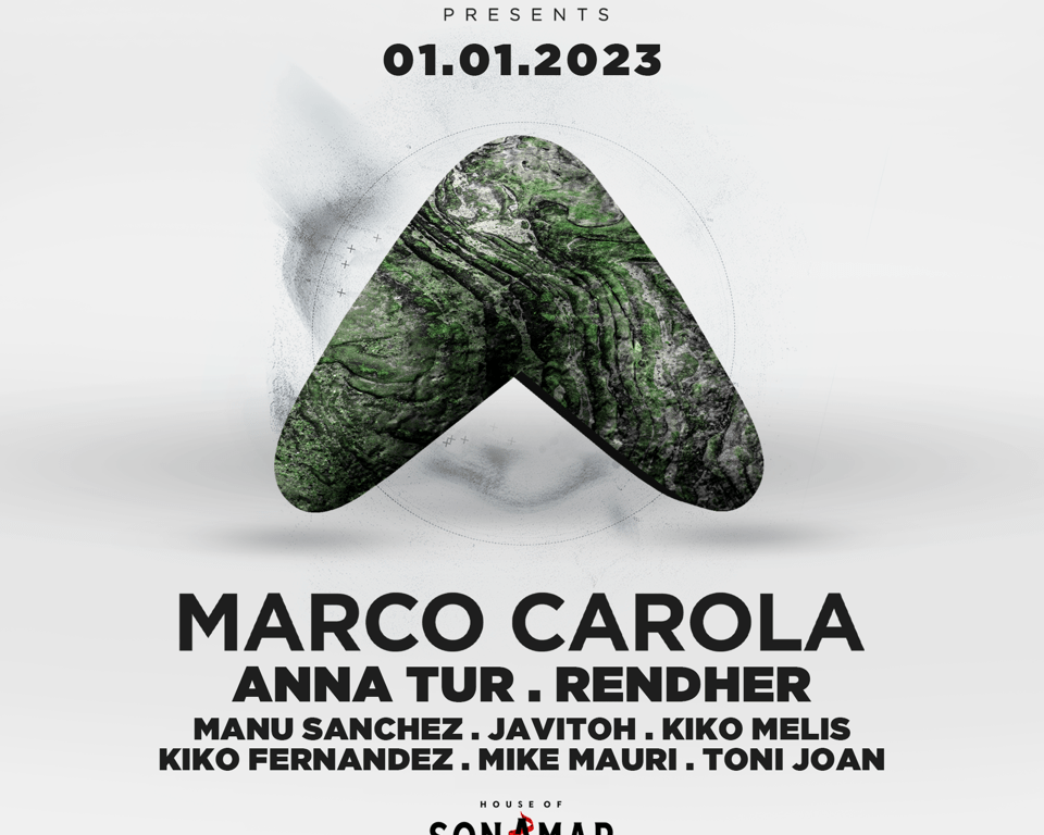 El italiano MARCO CAROLA ejercerá de gran cabeza de cartel para esta especial cita. El napolitano ejercerá de capo del Techno en una tarde musical llena de grandes sensaciones donde desplegará su inconfundible estilo con reminiscencias Tech y Minimal acompañadas de la elegancia que per se aporta. Junto a él estarán dos importantes figuras nacionales como ANNA TUR y RENDHER, quienes arroparán al italiano en una cita de primer nivel. El LineUp se verá reforzado con actuaciones muy variadas que permiten dibujar un perfecto inicio de año: MANU SÁNCHEZ, JAVITOH, KIKO MELIS, KIKO FERNÁNDEZ, MIKE MAURI y TONI JOAN.