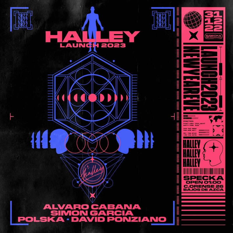La Sala Specka de Madrid volverá a ser el hogar donde Halley despliegue todo su potencial desde la 01:00 de la noche hasta altas horas de la madrugada. Sin duda, un llamativo Halley Launch 2023 con el que celebrar, reír, disfrutar y en especial, bailar al ritmo de la mejor electrónica. ¡Brindamos por un fantástico 2023 en Halley!