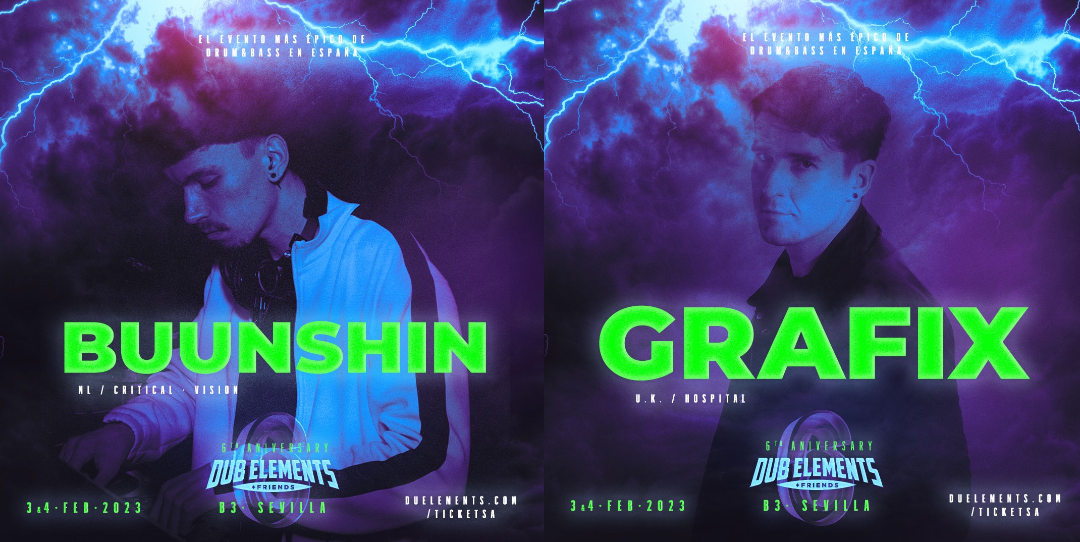 El británico GRAFIX y el neerlandés BUUNSHIN son los primeros confirmados estelares para este eventazo. El primero de ellos brindará ese espectacular y emotivo sonido entorno al Dancefloor, incorporando esencias Liquid y melódicas que le han alzado a ser uno de los productores más destacados en los últimos meses con temas como Alone, Feel Alive, Underground o Somewhere. Por su parte, Buunshin, que ha crecido como la espuma en fechas recientes, mostrará un aroma más oscuro y potente gracias a un Neurofunk aguerrido y rompedor que reluce en trabajos como Farewell, Overwerk, Distance Remix o Music To Stay In Your House Remix.