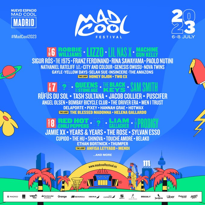 Las primeras estrellas en llegar al cartel han sido ROBBIE WILLIAMS, RED HOT CHILI PEPPERS, SAM SMITH, FRANZ FERDINAND, QUEENS OF THE STONE AGE, LIAM GALLAGHER, THE 1975 y el rapero LIL NAS X, quienes a base de Rock, Pop e Indie arrebatarán los escenarios con un público entregado a sus temas más famosos. Junto a ellos vislumbramos a artistas de toda tipo de índole representando géneros musicales muy diversos y con gran calado tanto a nivel internacional como nacional. Evidentemente, como uno de los platos fuertes de la propuesta de Mad Cool, la electrónica ha sumado figuras muy interesantes entre las que destaca sobremanera THE PRODIGY, quienes son además de los principales headliners del festival.