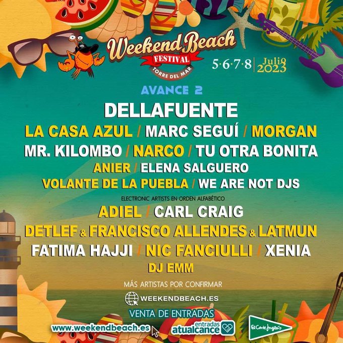 ¡Nuevas confirmaciones han llegado al cartel de Weekendbeach Festival 2023! Tras inaugurar su propuesta musical con el anuncio de actuaciones como las de Cera Khin, Maluma, Miguel Bastida, Fangoria, Seb Zito o Mala Rodríguez, el festival sureño ha presentado un variado y extenso avance donde figuras de primer nivel de la música se han unido a esta gran fiesta con el mejor ambiente.