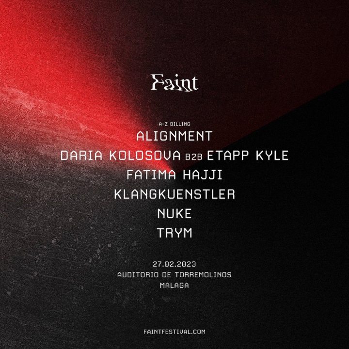 La fantasía sonora transformada en el Techno más contundente pero al mismo tiempo elegante y asombroso, hará que FAINT se convierta en una cita marcada en rojo en el calendario festivalero-clubbing nacional. Su puesta en escena musical es muy atractiva, por lo que seguro que estamos ante una de las mayores citas con la electrónica en este primer trimestre del año. Entradas disponibles en este enlace.