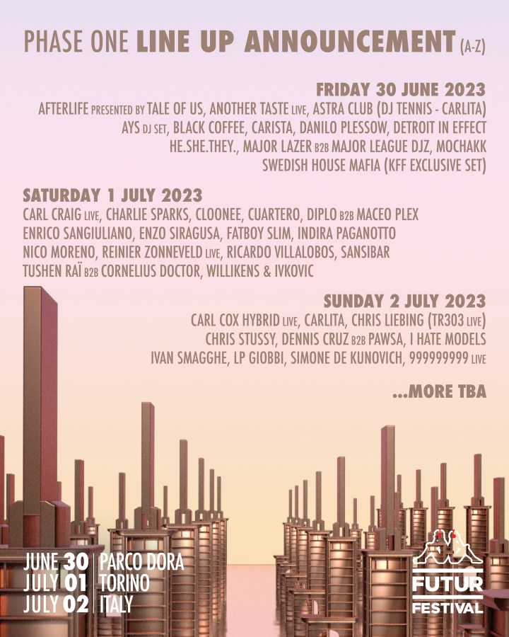Junto a otros grandes nombres confirmados y muchos otros por llegar, Kappa FuturFestival ya puede presumir de tener una de las mayores concentraciones de talento en todo el verano europeo. Su apuesta arriesgada pero ganadora le ha servido para mostrarse al mundo como un festival de referencia capaz de traspasar todo tipo de fronteras, alzando el Parco Dora de Turín a un lugar de culto al que todos desean poder asistir para bailar al son de los mejores djs del mundo.