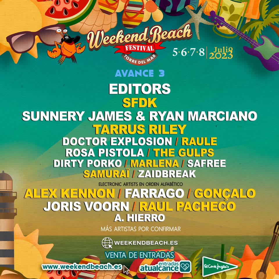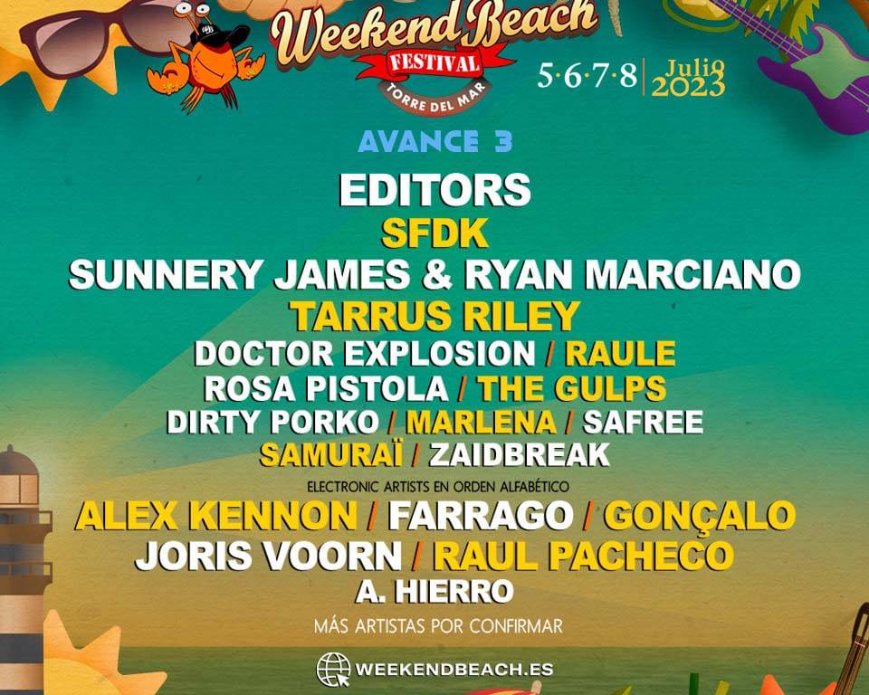 El malagueño WEEKENDBEACH FESTIVAL ha querido sorprender a sus aficionados con su tercer avance de cartel. El evento andaluz programado para los días 5, 6, 7 y 8 de Julio, ha seguido apostando por la variedad que le caracteriza gracias a una serie de anuncios que, aunando bajo el espíritu del festival, suman talento y calidad sonora a la programación de su próxima cita en Torre del Mar.