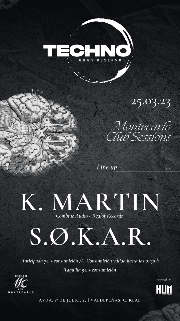 Con los djs K. MARTIN (Combine Audio, Redlof Records) y S.O.K.A.R. a los platos de la cita, la velada promete grandes emociones entorno a Techno, Hard Techno, Rave y Hard Dance, en un ambiente musical con influencia alemana. Junto con el colectivo KUM, la propuesta incide en las esencias más Hard del mejor sonido Techno actual, tomando también como referencia al sonido clásico del estilo. De ese modo, el evento contará con un fascinante aroma a oscuridad, tenebrosidad y potencia que se verá reflejado tanto en djs sets de mucho nivel, como en un público que lo dará todo de inicio a fin.
