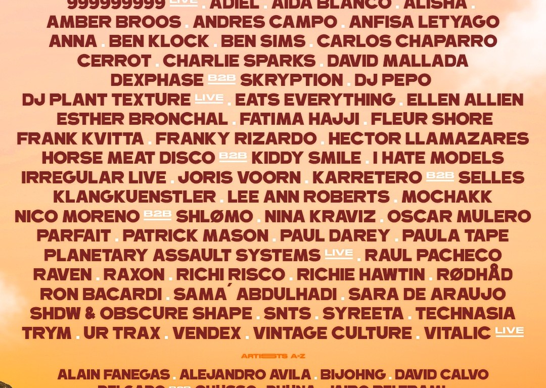 Entre los últimos grandes nombres en ser presentados podemos destacar a las rusas NINA KRAVIZ y ANFISA LETYAGO, ofreciendo un techno veloz, contundente y eficaz; al neerlandés JORIS VOORN con la elegancia y sutileza por bandera, adornando su sonido con tintes melódicos suaves y Tech; el misterioso alemán SNTS con su techno sobrio y elegante; o el francés SHLOMO, quien unirá fuerzas con el ya confirmado Nico Moreno para ofrecer un B2B lleno de energía, esencia Rave y Hard-Techno.
