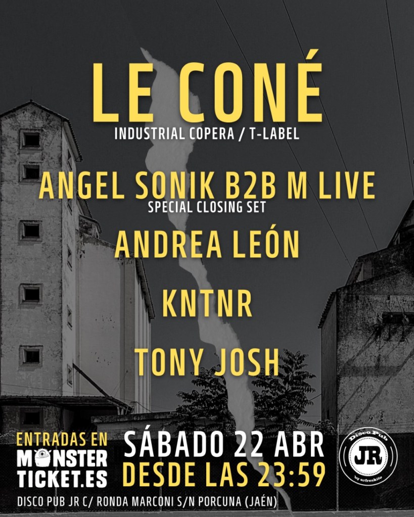 El gran invitado para la ocasión será LE CONÉ, afamado por recorrer diferentes puntos del país con un sonido agresivo y muy pistero. El dj de Granada, habitual en salas como Industrial Copera y reconocido por el impulso de la marca Vortex, desatará la locura entre el público con un sonido arrollador. La cita contará también con lo mejor de casa, ya que Porcuna puede presumir de tener una escena vehemente digna de admirar. ANGEL SONIK y M LIVE protagonizarán un interesante B2B que pondrá el broche final a una cita por cuyos platos pasarán también KNTNR, ANDREA LEÓN y TONY JOSH, demostrando cada uno a su manera y estilo el gran talento que atesora la provincia de Jaén.