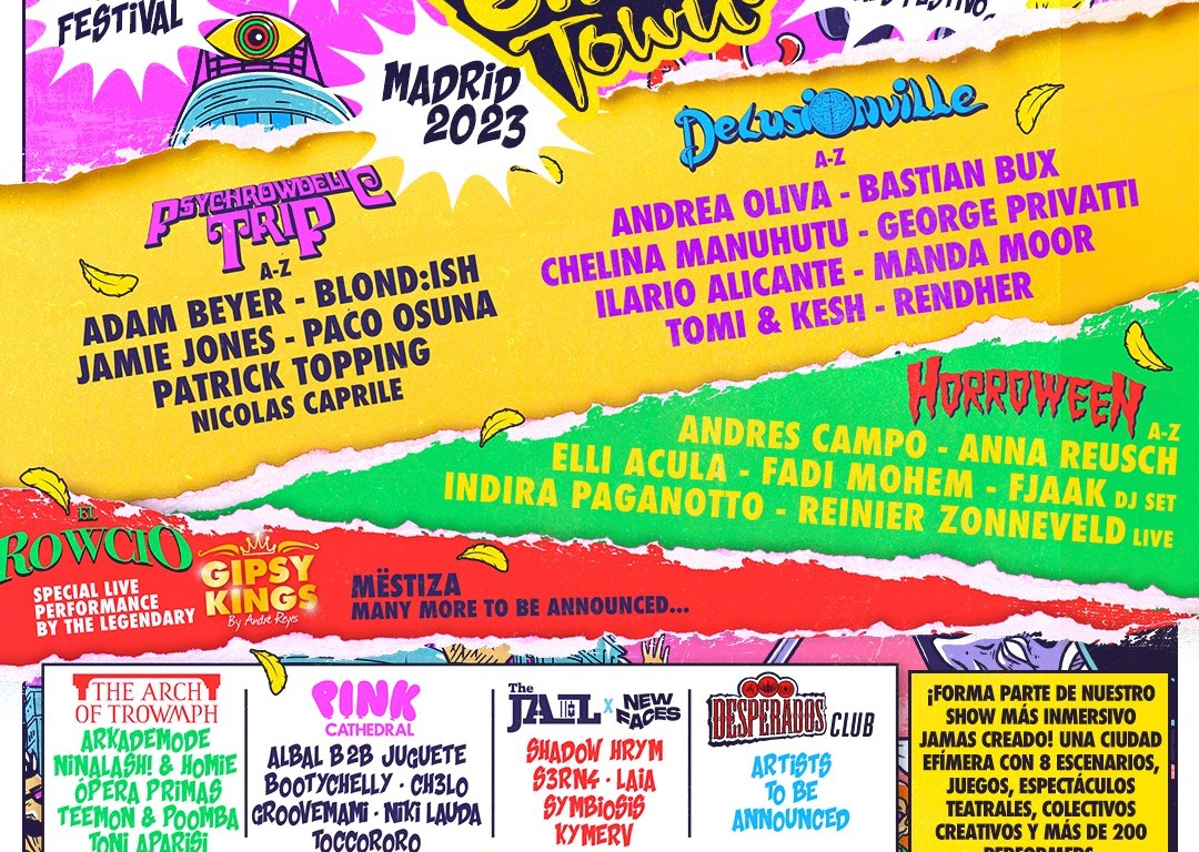 La propuesta se ve extendida con el escenario el rowcio, ambientado en la romería onubense y en la Feria de Abril de Sevilla (contando incluso con la actuación especial de Los GIPSY KINGS), el ya mítico The Arch Of Trowmph; Pink Cathedral y su reivindicativo papel para con el colectivo LGTBIQA+; la jaula secreta de THE JAIL X NEW FACES, escondida en algún rincón del festival; y el escenario Desperados Club, como guinda final a la programación musical. Así mismo, shows teatrales en vivo, bailarines, colectivos creativos, performances, juegos y gran variedad de puestos dan forma a toda una ciudad itinerante que durante una jornada ofrecerá un mundo de música y fantasía a todos los asistentes.