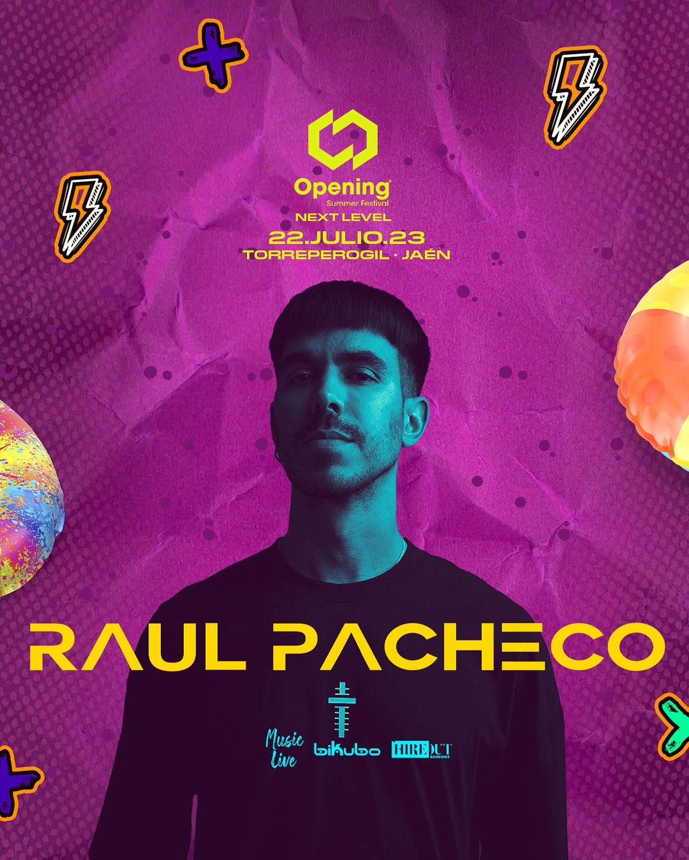 El extremeño RAÚL PACHECO añade su talento al LineUp de la próxima edición. Habitual en los mejores festivales del país, el dj hará mover el esqueleto a los aficionados con una técnica impoluta a la que suma una gran conexión con el público. Capaz de moverse con polivalencia entre dinámicas Tech-House y esencias Techno, volverá adueñarse de la noche haciendo bailar a todos los presentes, quienes han demandado masivamente su vuelta a Torreperogil.