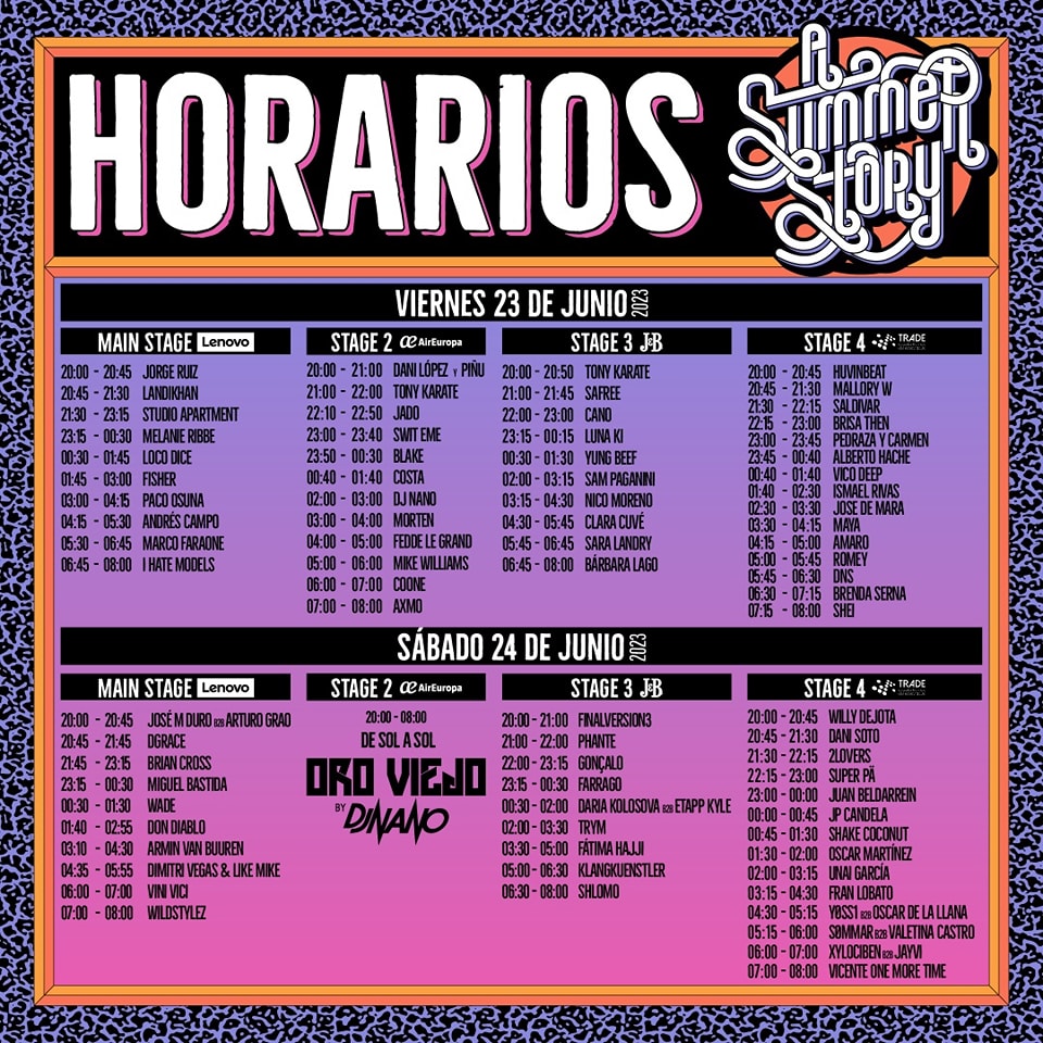 La séptima edición de A Summer Story arrancará en apenas unos días y los aficionados ya pueden programar sus dos intensas jornadas gracias al anuncio de los horarios de actuaciones. La Ciudad Del Rock (Arganda del Rey) acogerá 4 escenarios simultáneos y muchas horas de música, conformando una oferta basada en una espectacular programación musical encumbrada con actuaciones estelares como las de Armin van Buuren, Nico Moreno, WADE, Don Diablo, Fisher, Fedde Le Grand, Vini Vici, Dimitri Vegas & Like Mike, Coone, Loco Dice, Paco Osuna…