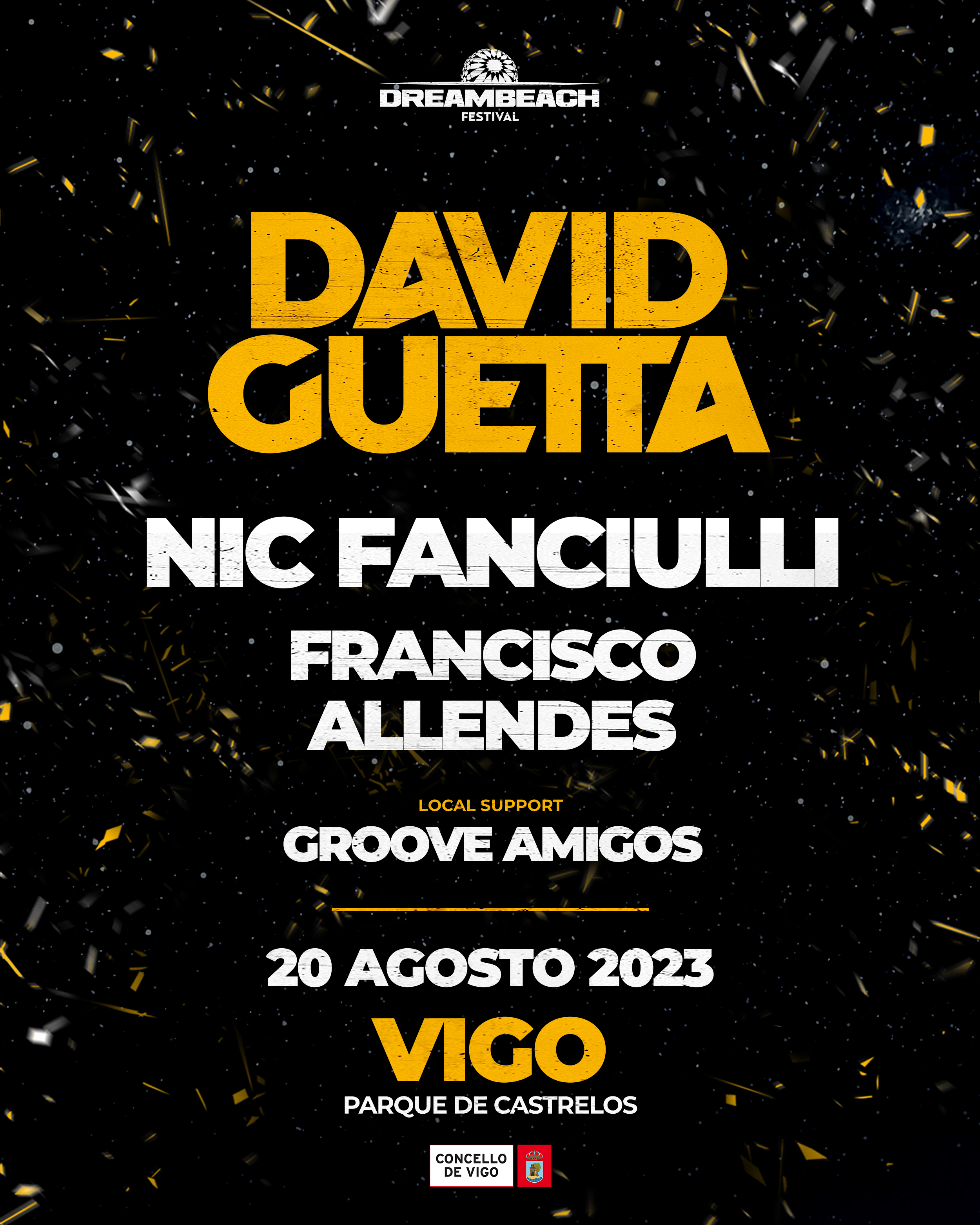 Como ya se mencionaba, el referente francés del EDM DAVID GUETTA será el gran protagonista a los platos del evento. Líder de la escena desde hace décadas, el galo se reinventaba este último lustro con un sonido Future Rave que ha cautivado a aficionados a lo largo de todo el globo terráqueo. Pese a la gran cantidad que acapara -como es evidente- el francés, la cita contará también con otros dos referentes de primer nivel en el sonido Tech-House. El británico NIC FANCIULLI y el chileno FRANCISCO ALLENDES, arrancarán el mejor ritmo en el evento haciendo que el Groove gobierne imperiosamente sobre Lugo. Así mismo y completando el cartel a modo de warm up, GROOVE AMIGOS introducirá el sonido House en una noche que promete grandes emociones.