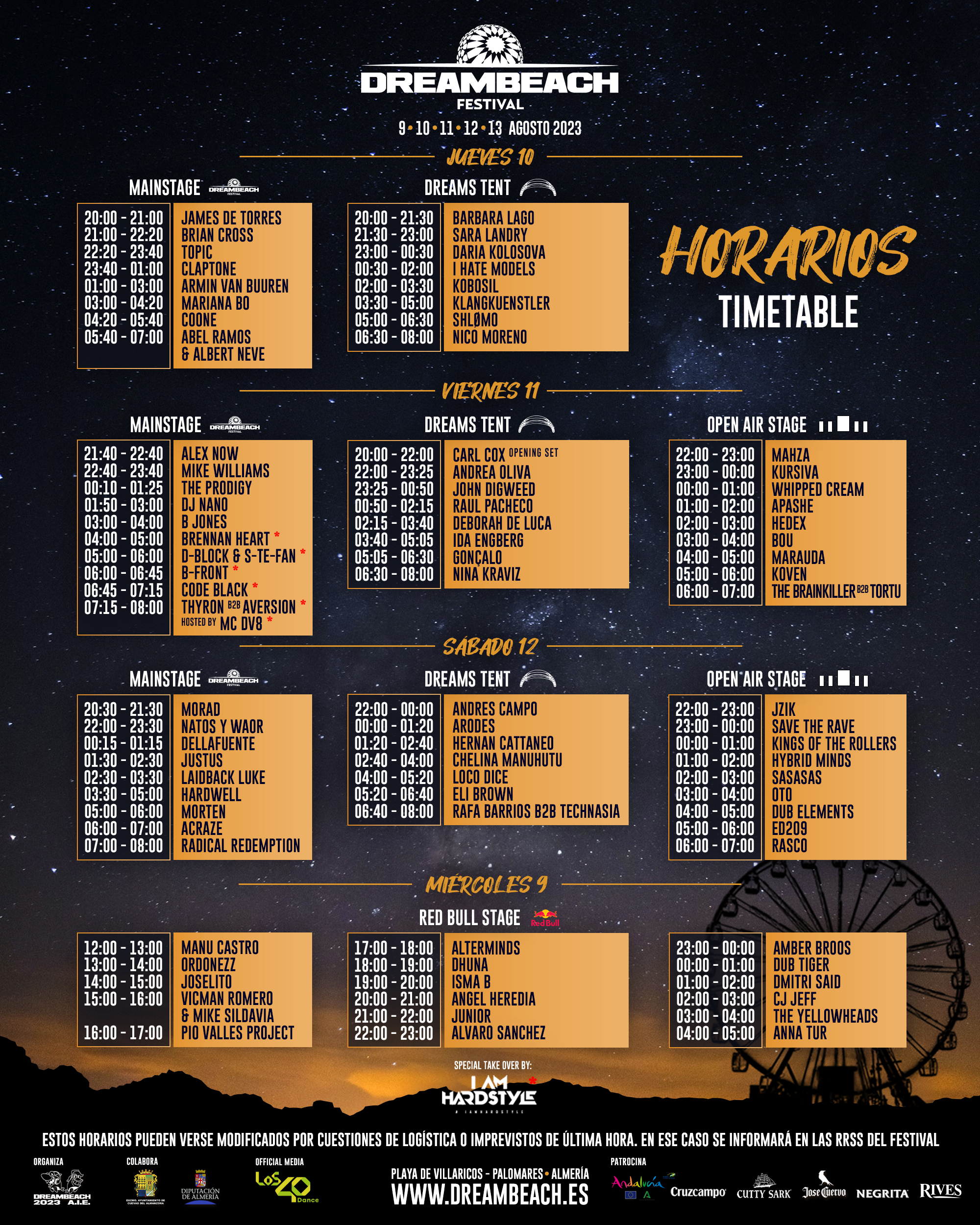 El festival, que cuenta en nómica artística con referentes de la talla de Hardwell, Carl Cox, Andrea Oliva, SaSaSaS, The Prodigy, Morten, I Am Hardstyle by Brennan Heart, Nico Moreno, Marauda, Armin van Buuren, Coone, Chelina Manuhutu, Bou, Laidback Luke, Mike Williams, Loco Dice, Deborah de Luca, I Hate Models, Kings Of Roller, Hedex, Radical Redemption, Nina Kraviz, Technasia, ACRAZE o Claptone, ha presentado los ansiados horarios de actuacione