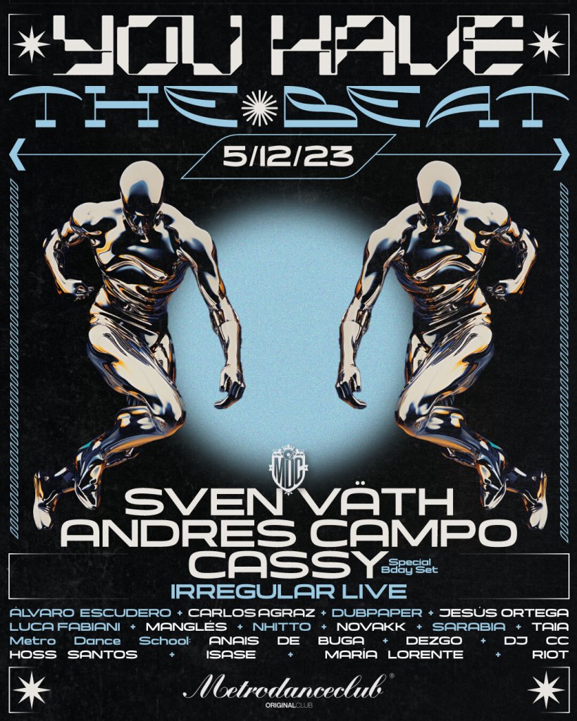 Metro Dance Club no para de superarse a sí mismo. Cada uno de sus eventos es un paso hacia adelante y una muestra inequívoca de su apuesta por la calidad. El próximo 5 de diciembre, es el turno de una nueva edición de You Have The Beat, su concepto más clubber. Tras la masterclass de techno sin concesiones que se vivió durante Los Otros de la mano de Oscar Mulero, en esta ocasión es el turno de uno de los legendarios maestros de este estilo, el incombustible SVEN VÄTH se sube a la cabina de Metro Dance Club escoltado por CASSY, ANDRÉS CAMPO y un elenco de artistas que llevan la esencia del club de Bigastro en su ADN.