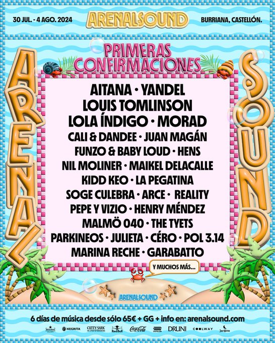 El verano de 2024 comienza a coger color gracias a los anuncios de los grandes festivales de música. Uno de los más importantes, tanto por prestigio como por cartel, es sin duda ARENAL SOUND, macro-evento que tomará las playas de Burriana (Castellón) del 30 de julio al 4 de agosto. El festival ha presentado a los primeros artistas confirmados, quienes harán bailar, saltar, cantar y disfrutar al público de una forma muy variada y cosmopolita.