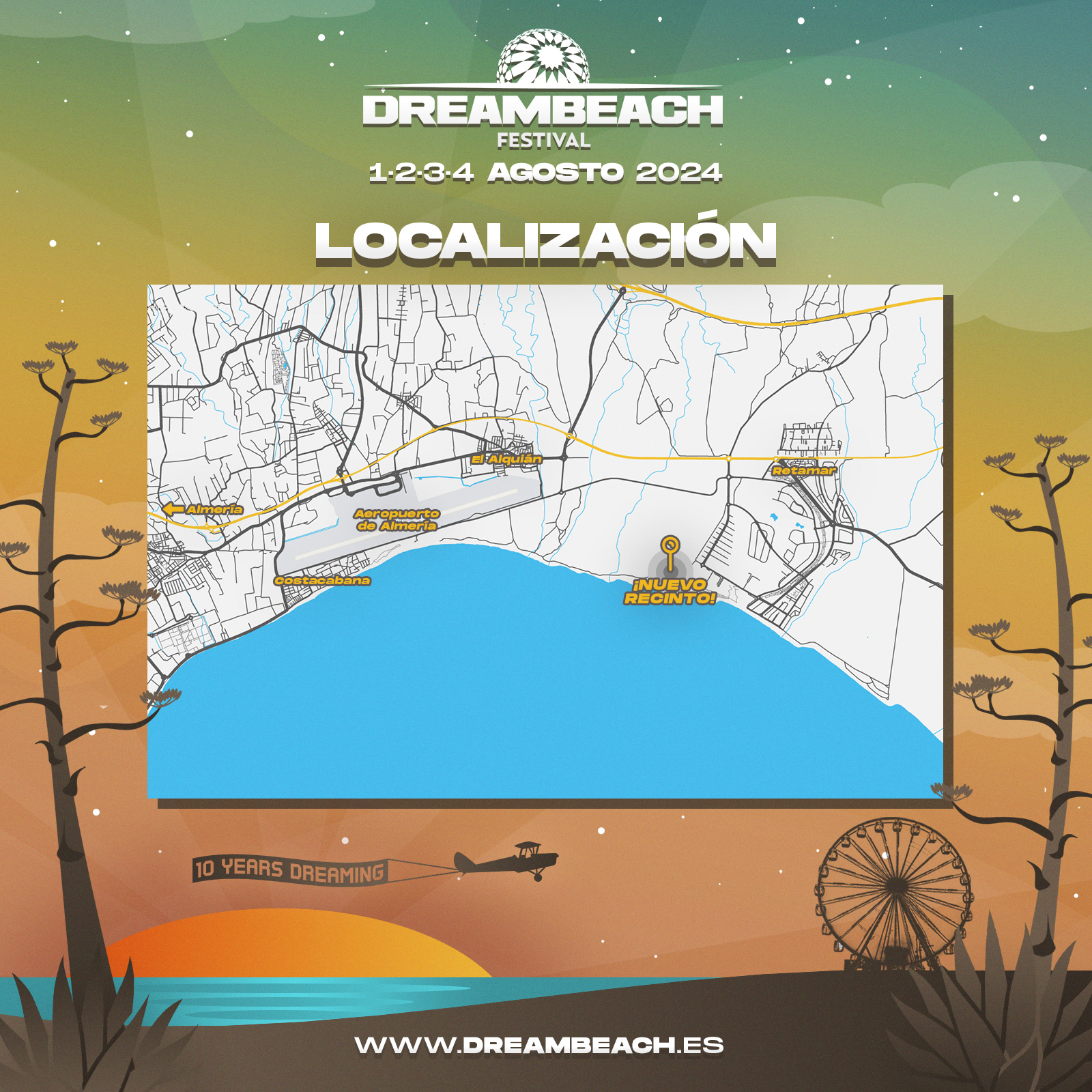 Tras una década disfrutando de las playas de Villaricos, en Cuevas del Almanzora, Dreambeach se desplaza hasta la capital provincial para ofrecer muchas más facilidades en cuanto a producción, movilidad y capacidad hotelera y de alojamiento para los visitantes. Concretamente será la zona de El Toyo-Retamar la que acoja el nuevo recinto (junto al Aeropuerto, a las afueras de Almería capital), que por supuesto contará con zona de acampada y una estructuración similar al anterior recinto, pero con mayor potencial de aprovechamiento.