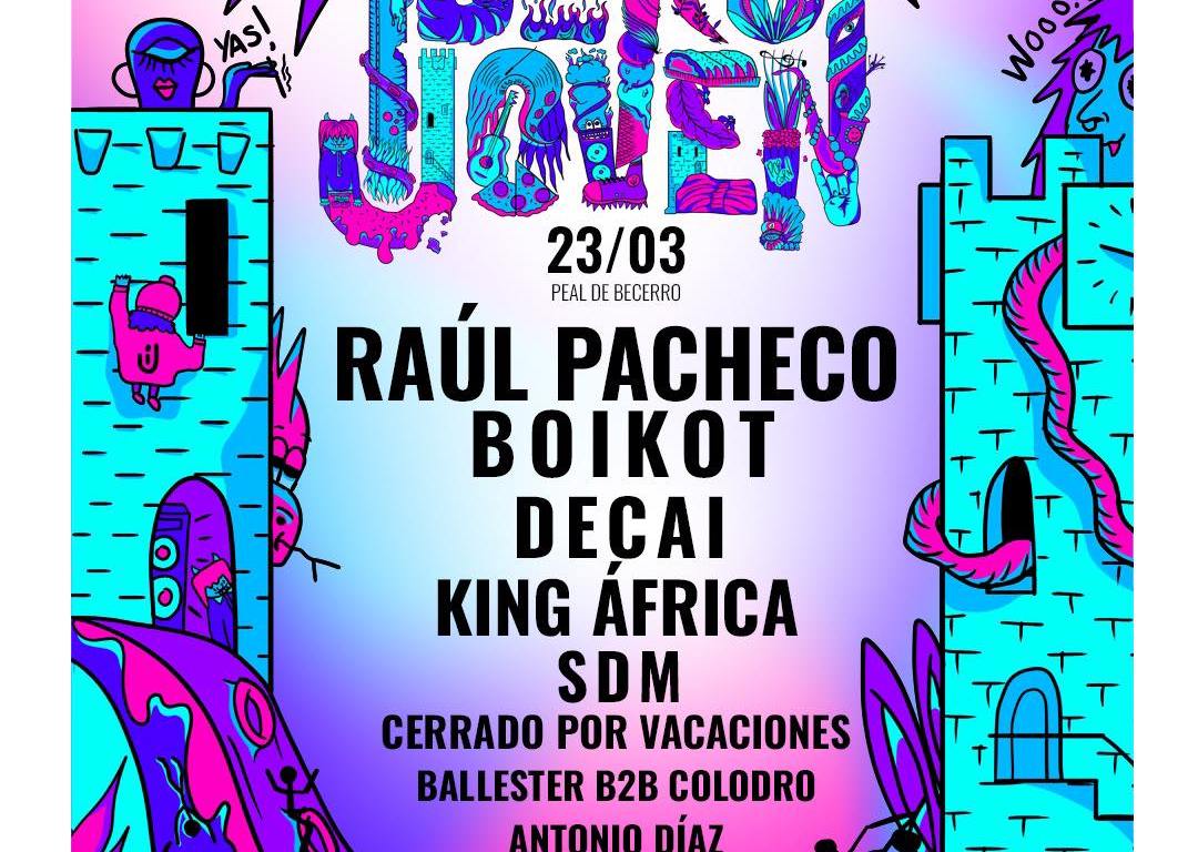 La música electrónica tendrá protagonismo gracias a la visita estelar del extremeño RAÚL PACHECO. Codeado con los mejores referentes del mundo en fiestas y festivales de primer nivel, el reputado dj a nivel nacional regresará a Jaén para hacer mover el esqueleto a los fans, derrochando una clase de personalidad y maestría a los platos y haciendo que el Tech-House reluzca de forma muy especial. En esos mismos géneros encontramos a dos djs jiennenses que vienen haciéndolo muy bien en los últimos tiempos como son BALLESTER y COLODRO, quienes unirán fuerzas en una actuación en formato B2B; así como MANNEK, quien también hará que el Tech-House suene de lo lindo en la cita.