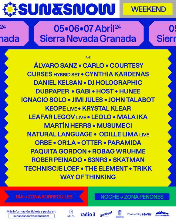 Haciendo las delicias del público más selecto, el mayor festival de alta montaña de nuestro país encara con ilusión una nueva cita. Todo estará apunto para comenzar el mes de abril entre los ritmos que marquen los protagonistas a los platos. Con un entorno único y la pretensión de ofrecer una desconexión a través de la música, Sun & Snow buscará el éxito y la gloria por quinta vez. ¡Descubre ya el cartel al completo!: