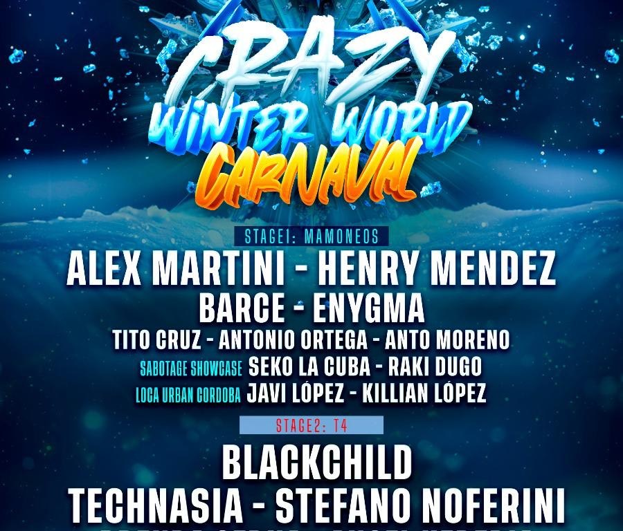 Todo queda listo para la edición invernal de CRAZY WORLD, que aparte de ofrecer una gran ambientación entorno a la música, la hará paralelamente con temática carnavalesca. Córdoba disfrutará de esta forma de un festival donde la música más festival y el carnaval se fusionan, haciendo que el público acuda en masa para pasarlo de lujo en una gran jornada de fiesta con amigos. ¡Aún estás a tiempo de disfrazarte y bailar en Crazy Winter World Carnaval!