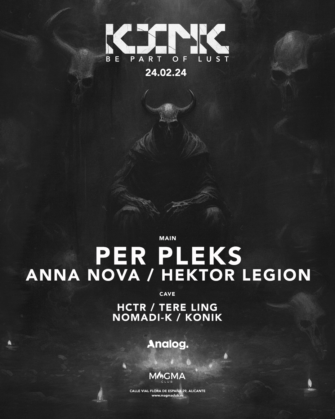 Si quieres ser testigo de la revolución techno que se está fraguando en Alicante no puedes perderte la próxima fiesta de KINK Social Club en la Sala Magma, un club espectacular con dos espacios, dos terrazas y con un sistema de sonido brutal con 50.000W. La gente está hambrienta de techno y no existe receta más sabrosa que la que te pondrá sobre la mesa KINK Social Club. ¡No te lo pierdas!