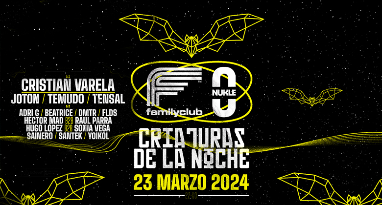 ¿Qué se va a vivir en Criaturas de la Noche de Family Club? Cristian Varela es, sin duda, uno de los nombres más importantes de la historia del techno en España y en el mundo. El madrileño lleva más de 25 años de carrera, en los que ha sido pionero, innovador y galardonado con numerosos premios. Conocido por su estilo único, en el cual mezcla techno, house, electro y funk con una técnica magistral a los platos. Varela volverá a Family Club para deleitarnos con su frenética y carismática presencia en cabina.