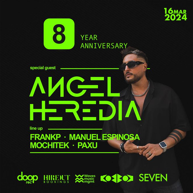 Con referencias de primer nivel en el sonido Tech-House y Minimal, Doop Rec ha sabido crearse su propio hueco en la escena alcanzando repercusión internacional. Alcanzar 8 años de vida en el sector no es fácil, por ello que hayan querido apostar por uno de los grandes artistas de la escena para hacer que la Discoteca Seven de Bailén disfrute y baile al son del mejor sonido electrónico actual. ¡A por otros 8 años más (cómo mínimo!!!)!