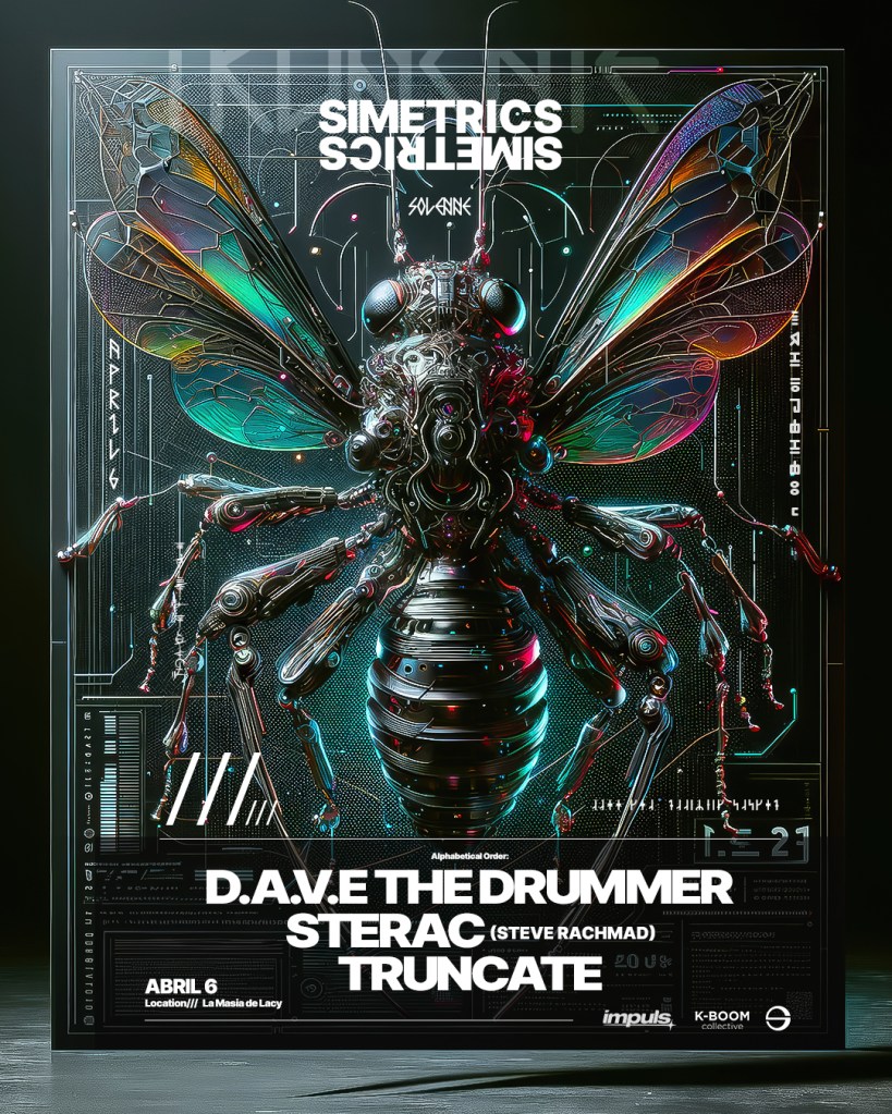 La pista principal estará enfocada al sonido 100% Simetrics, a cargo de los creadores de la marca EVERYNATION, residente de Spook, junto con su compañero de batallas MANYEZ. Completando el cartel, estará el americano TRUNCATE y el legendario DJ holandés STEVE RACHMAD, bajo su alias STERAC, así como algunos de los artistas de los colectivos colaboradores de Impuls y K-Boom Collective. «SIMETRICS es mucho más que un festival de música electrónica; es una experiencia que fusiona la pasión por el techno con la energía de la comunidad», afirman sus fundadores Javier Crespo y Sergio Mañez. «Estamos muy contentos de dar la bienvenida a los amantes del género para disfrutar de 14 horas de auténtico sonido techno en un entorno único como la Masia de Lacy».