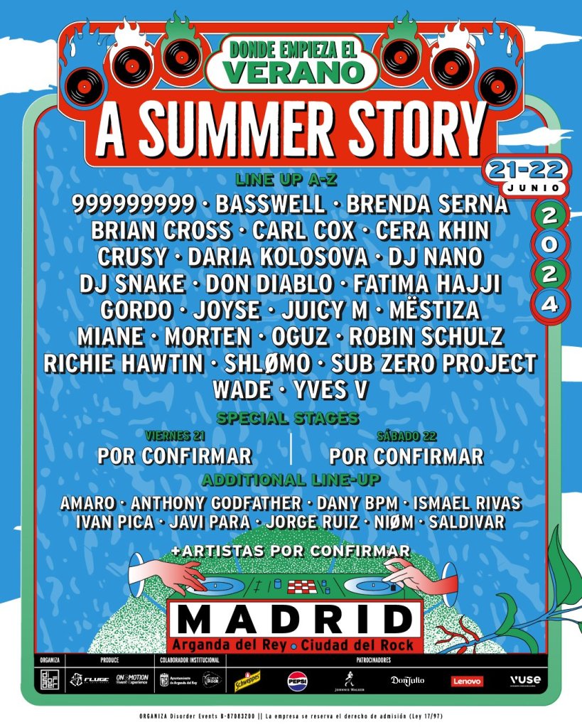 Uno de los mayores festivales de música electrónica de nuestro país continua perfilando su apuesta para su nueva edición. A Summer Story, que regresará a la Ciudad del Rock de Arganda del Rey los días 21 y 22 de junio, ha reforzado su elenco con una veintena de anuncios entre los que encontramos grandes artistas de la escena, apuestas novedosas y una representación exquisita de lo mejor de la escena nacional, todo ello en clave House-Mainstream y Techno principalmente.