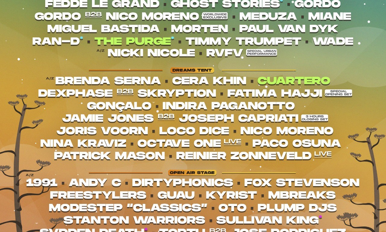 Anteriores confirmados: Paul van Dyk, Brennan Heart, Indira Paganotto, Svdden Death, Morten, 1991… / David Guetta, Modestep… / Fedde Le Grand, Ran D, Dirtyphonics, Nina Kraviz, Ghost Stories, Joris Voorn, Fox Stevenson… / Gordo B2B Nico Moreno, WADE, Sullivan King, Dexphase B2B Skyrption… / Timmy Trumpet, Reinier Zonneveld, Jamie Jones B2B Joseph Capriati… / Fatima Hajji, Chase & Status, Paco Osuna… / Loco Dice, Andy C, Meduza