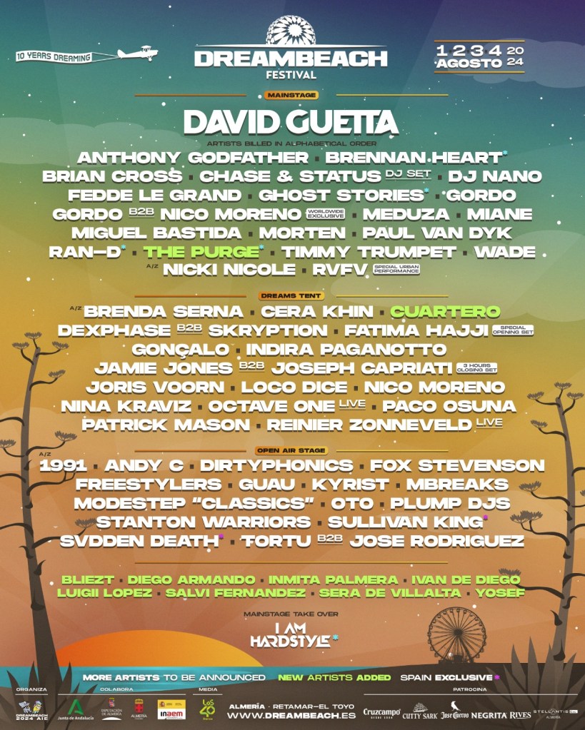 La gran sorpresa de avance ha sido el anuncio del italiano THE PURGE, quien a base de Rawstyle refuerza el elenco Hard para desatar la locura del público. Asentado en Países Bajos y con una trayectoria al alza, el referente debutará en Dreambeach formando parte del TakeOver protagonizado por I Am Hardstyle, donde recordemos que también estarán Brennan Heart, Ran D y Ghost Stories. Mucho talento sumará también el referente patrio CUARTERO. El malagueño regresa a la Dreams Tent para ofrecer un set muy serio donde el Groove, el Tech-House más profundo y el Techno de corte clásico aúnan sinergias bajo la magia que le imprime el andaluz.