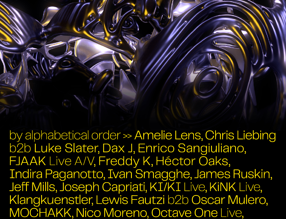 Apostando por el sonido clásico, el festival hará que el Techno recorra espectros que van desde el purismo y profundidad de los británicos CHRIS LIEBING y LUKE SLATER (actuarán de forma conjunta) o del portugués LEWIST FAUTZI y el español OSCAR MULER (también en B2B), hasta el Techno más elegante que ofrecen los italianos ENRICO SANGIULIANO o JOSEPH CAPRIATI, pasando por el Hard-Trance-Techno del alemán KLANGKUENSTLER. En formato Live encontramos figuras deslumbrantes como el húngaro KiNK, los germanos FJAAK o los neerlandeses REINIER ZONNEVELD y KI/KI, apuntalando un brillante cartel que derrocha personalidad y versatilidad.