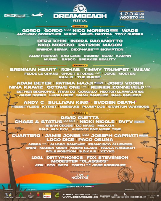 Anteriores confirmados: Paul van Dyk, Brennan Heart, Indira Paganotto, Svdden Death, Morten, 1991… / David Guetta, Modestep… / Fedde Le Grand, Ran D, Dirtyphonics, Nina Kraviz, Ghost Stories, Joris Voorn, Fox Stevenson… / Gordo B2B Nico Moreno, WADE, Sullivan King, Dexphase B2B Skyrption… / Timmy Trumpet, Reinier Zonneveld, Jamie Jones B2B Joseph Capriati… / Fatima Hajji, Chase & Status, Paco Osuna… / Loco Dice, Andy C, Meduza / The Purge, Cuartero…