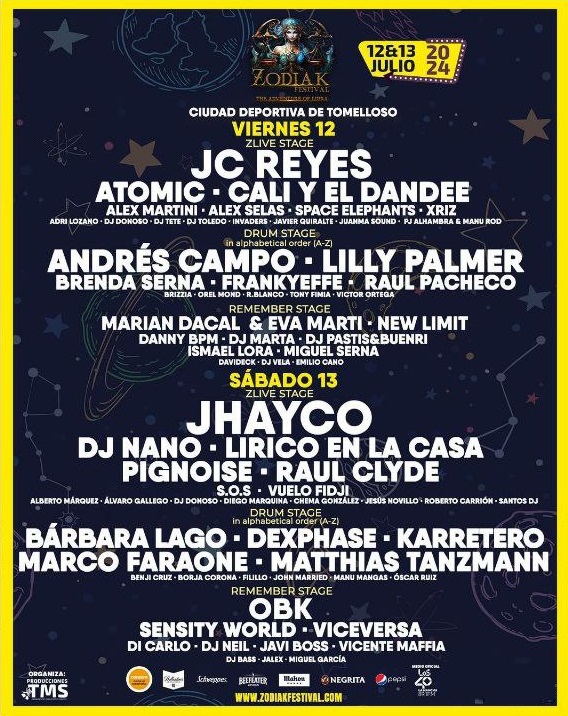 Zodiak Festival acogerá al público procedente de todas partes de La Mancha, con aficionados que llegarán desde otros puntos como Madrid, Valencia o Andalucía, en la que es una de las propuestas de interior más llamativas de todo el verano español. Con la ambición de crecer tras su fantástica edición de 2023 y con la variedad y versatilidad como tónica general, Zodiak ya comienza la cuenta atrás hacia una edición para el recuerdo. ¡Os dejamos el cartel completo con la distribución por días!: