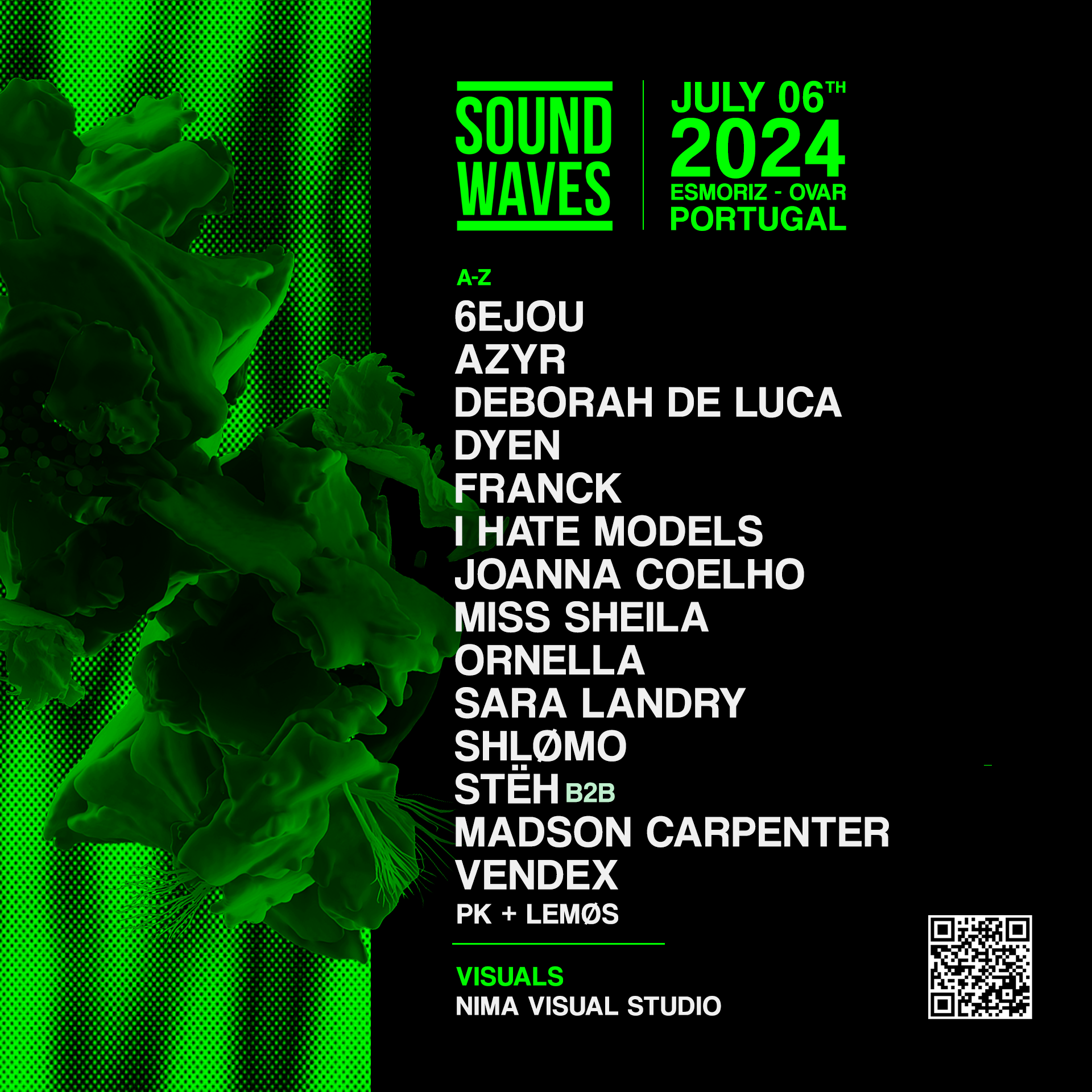 Headliners – Para esta edición 2024, los promotores del Sound Waves se han superado, convocando a artistas de renombre internacional como lo potente I Hate Models, la carismática Sara Landry, el fascinante Shlømo y la diva italiana Deborah de Luca, que actuará en la única fecha portuguesa de su gira «Hard Pop Tour 2024».