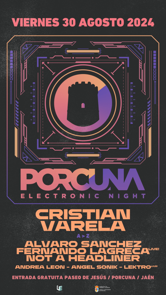 Una explosión de Techno, buen gusto y talento inundará las calles de Porcuna (Jaén) el viernes 30 de agosto. La localidad jiennense acogerá la Octava Edición de Porcuna Electronic Night en una velada que, contando con un elenco sensacional y brillante del que ya puede presumir, hará las delicias de los aficionados de la electrónica de forma gratuita. Porque sí, aunque parezca extraño, este gran festival es de entrada gratuita, lo que suma un evidente plus adicional junto a los grandes artistas que formarán parte de esta edición:
