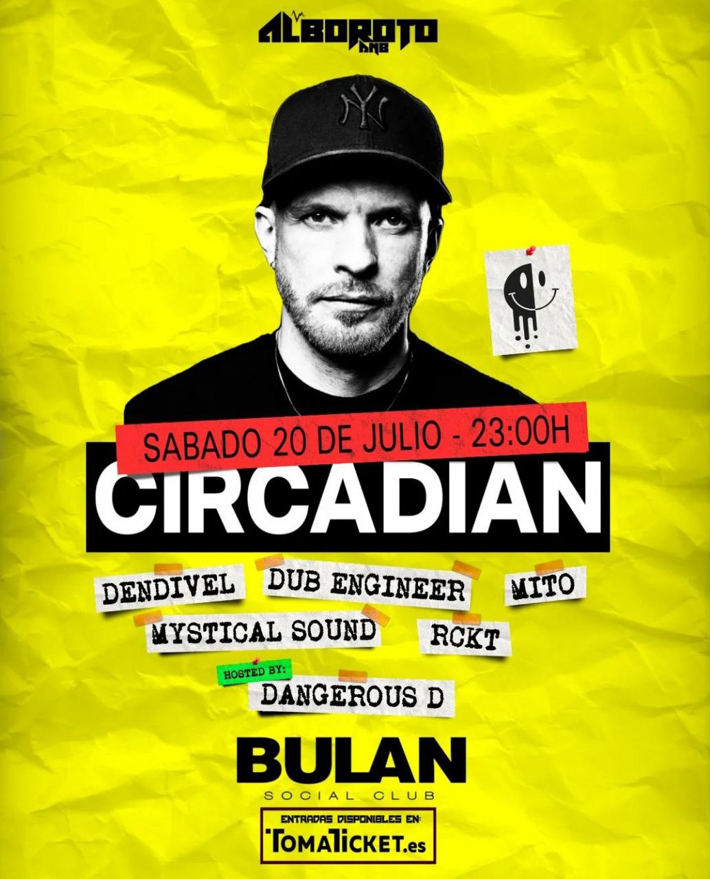 El británico CIRCADIAN debutará en Canarias siendo el gran invitado especial de Alboroto DNB. Con ese interesante proyecto en solitario, el ex-componente de The Prototypes llega a Tenerife para ofrecer su imparable ritmo, marcado por hits que aúnan elementos Jump y Dancefloor de forma muy original y pegadiza. Junto a su actuación estelar estarán los grandes exponentes del sonido DnB tinerfeño. DUB ENGINEER, MITO, DENDIVEL, MYSTICAL SOUND, RCKT y el Mc DANGEROUS D, suman su talento al cartel de un proyecto que promete dar muchas alegrías a los aficionados.