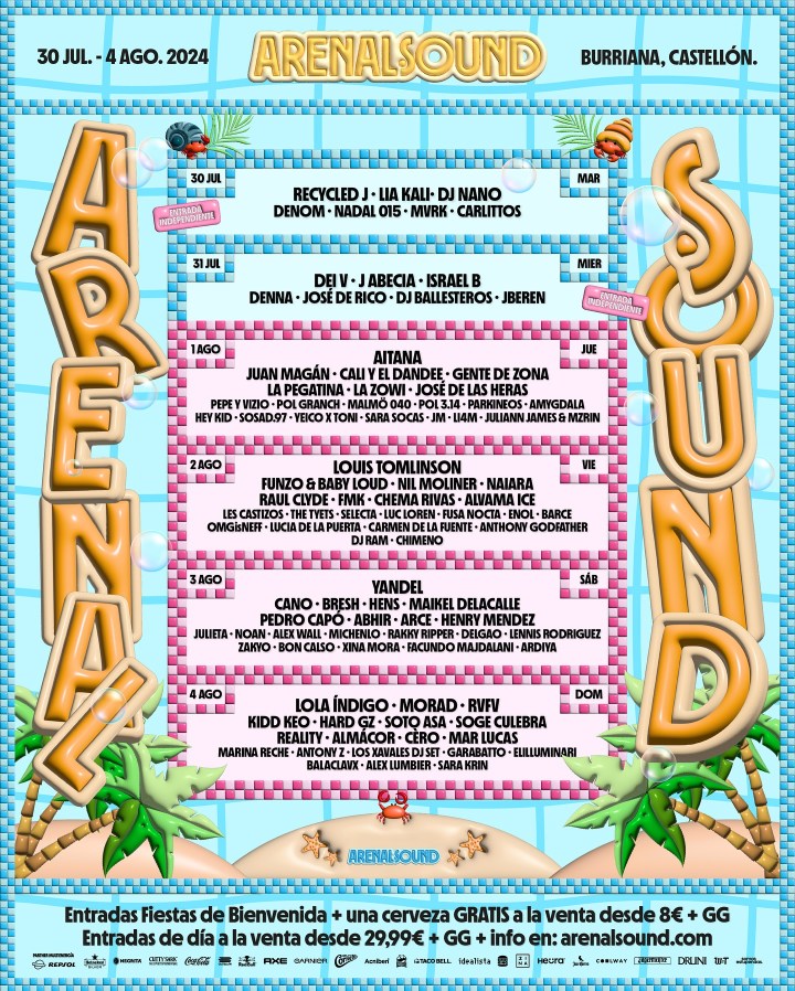 Uno de los grandes festivales de España ha presentado la programación musical al completo diseñada para su nueva edición. ARENAL SOUND hará que el levante mediterráneo vuelva a ser el escenario perfecto de una puesta en escena que, con muchos años de trayectoria y éxito, volverá a ser la oferta de ocio musical idónea para miles de jóvenes procedentes de todas partes del país. Tras anunciar a múltiples artistas en los últimos meses, los asistentes ya pueden conocer la totalidad del LineUp de 2024.