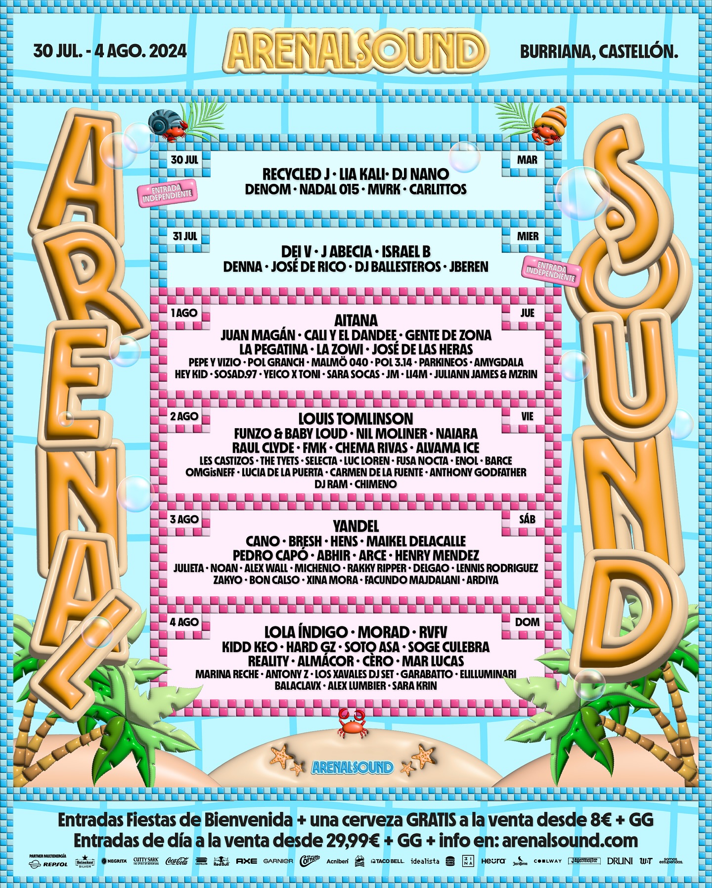 Uno de los grandes festivales de España ha presentado la programación musical al completo diseñada para su nueva edición. ARENAL SOUND hará que el levante mediterráneo vuelva a ser el escenario perfecto de una puesta en escena que, con muchos años de trayectoria y éxito, volverá a ser la oferta de ocio musical idónea para miles de jóvenes procedentes de todas partes del país. Tras anunciar a múltiples artistas en los últimos meses, los asistentes ya pueden conocer la totalidad del LineUp de 2024.