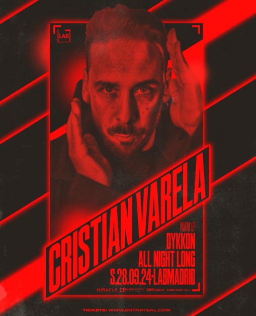 La discoteca LAB (LABTheClub) en Madrid será la que acoja este importante evento en el que Cristian Varela será el gran protagonista de inicio a fin. La música electrónica entorno al Techno será protagonista en una actuación de larga duración, antecedida por un warm up a cargo de DYKKON, donde expondrá toda su maestría, habilidad y buen gusto a las mezclas.