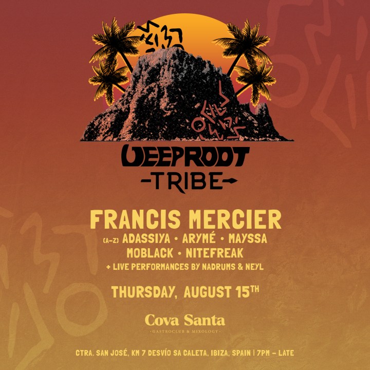 El pasado 11 de julio tuvo lugar uno de los eventos más espectaculares de la temporada ibicenca en Cova Santa. Deep Root Tribe de Francis Mercier nos regaló una de esas fiestas que solo se pueden definir como perfectas. La puesta en escena, la atmósfera y sobre todo una selección musical de primer orden fueron los ingredientes que pudimos saborear bajo el sol de Ibiza. El próximo 15 de agosto Francis Mercier desembarcará por segunda vez en la Isla Blanca para deleitarnos con su propuesta electrónica basada en los sonidos del mundo y acompañado por un elenco de artistas que colaboran con el sello Deep Roots Records. Este sellose fundó en 2014 originalmente con la intención de crear un espacio para la música House en Nueva York y ha albergado el trabajo de diferentes artistas de todo el mundo.